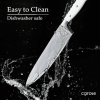 Long-lasting sharp blade: our knife set is constructed with high-carbon german stainless steel, ensuring long-lasting performance. The blade is razor-sharp that effortlessly glides through various ingredients allowing you to experience precision cutting like a professional chef. It's also dishwasher safe, anti-rust and resistant to corrosion